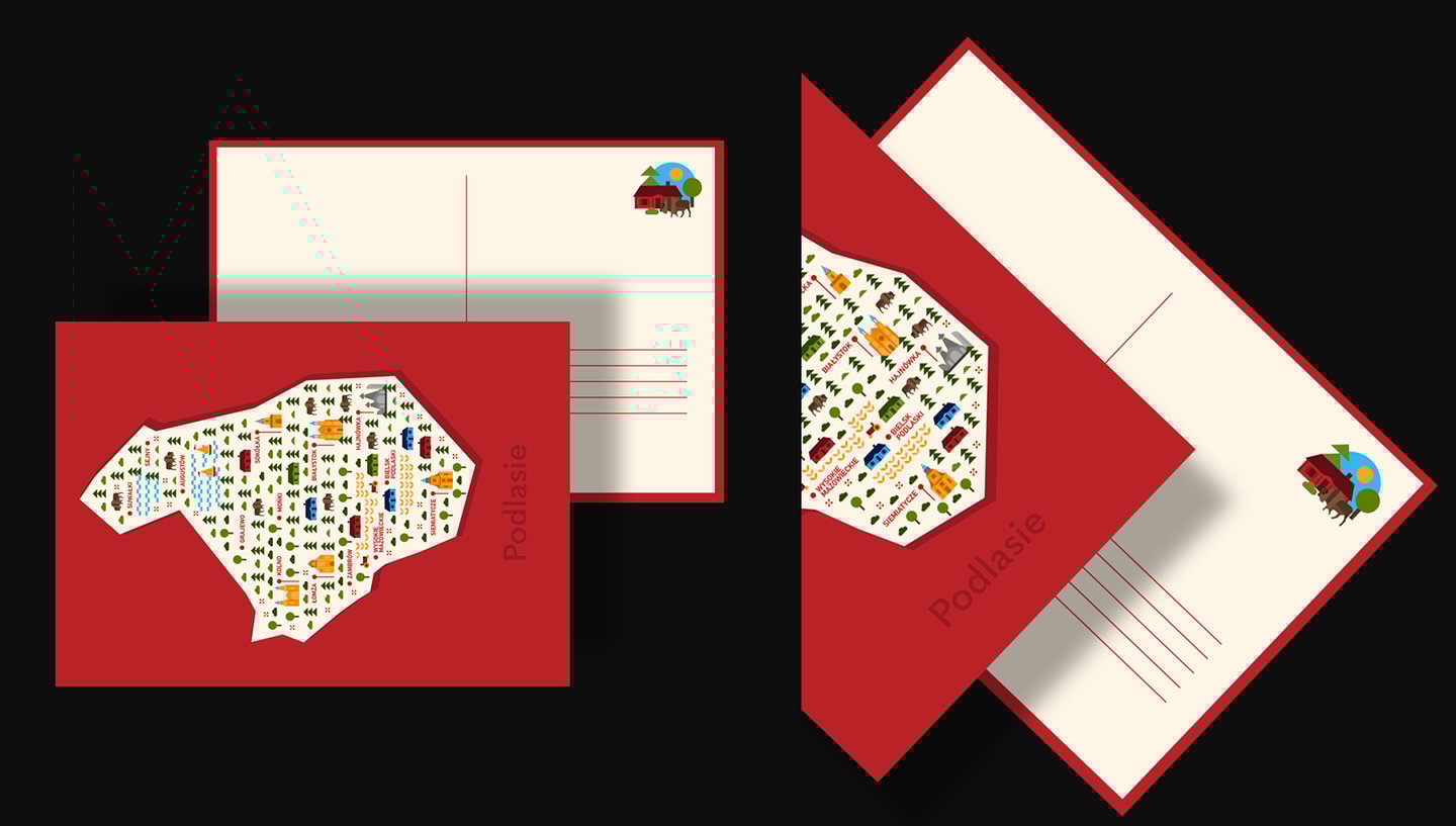 Opis: Ilustracje Podlasia powstały z pomysłu stworzenia własnych pocztówek z tego regionu. Na ilustracjach uwzględniłam główne miasta oraz, w niektórych przypadkach, atrakcje turystyczne, do których turyści mogą się udać. Projekt ewoluował, a w efekcie powstały także inne materiały.