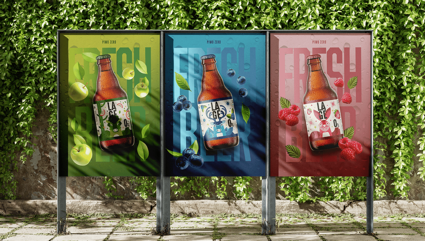 Opis: Zaprojektowałam etykiety na piwo 0%, na których zilustrowałam zwierzęta z trzech różnych regionów Polski, w ramach projektu studenckiego. Etykiety zawierają podstawowe informacje, które odpowiadają tym, jakie znajdujemy na półkach w sklepach.