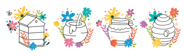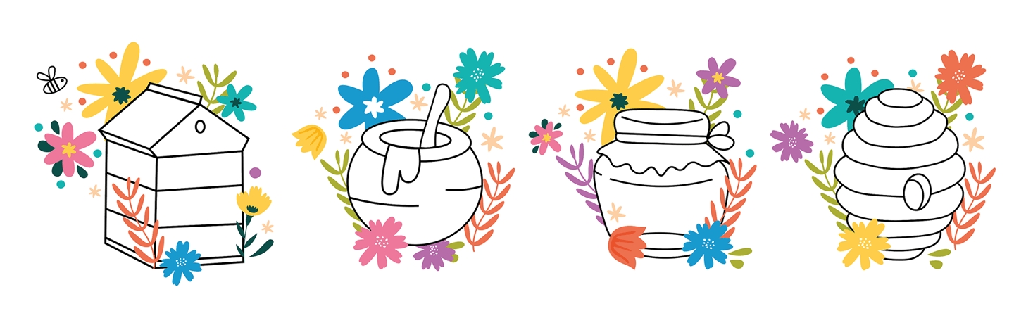 Opis: Etykiety zostały zaprojektowane na zlecenie miejscowej firmy, produkującej 100% miód pszczeli w Polsce. Ilustracje miały być lekkie, kojarzące się z wiosną, naturą i sielską atmosferą.